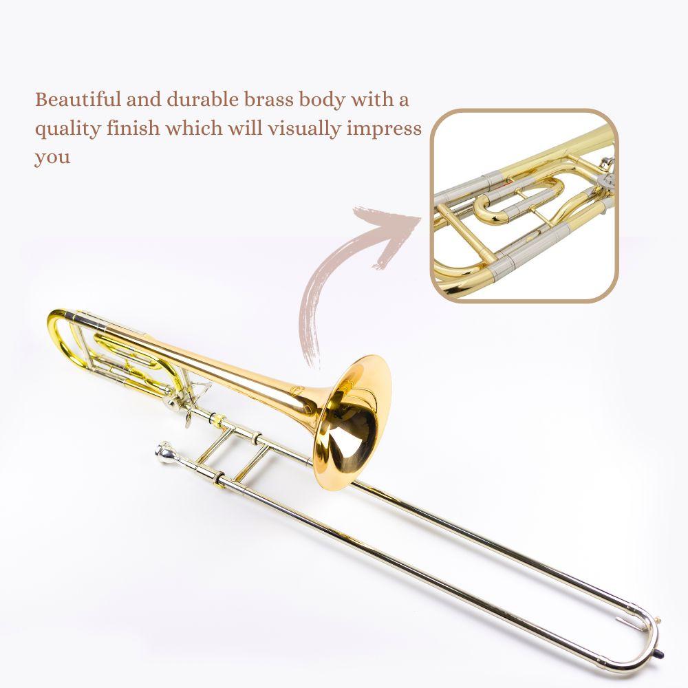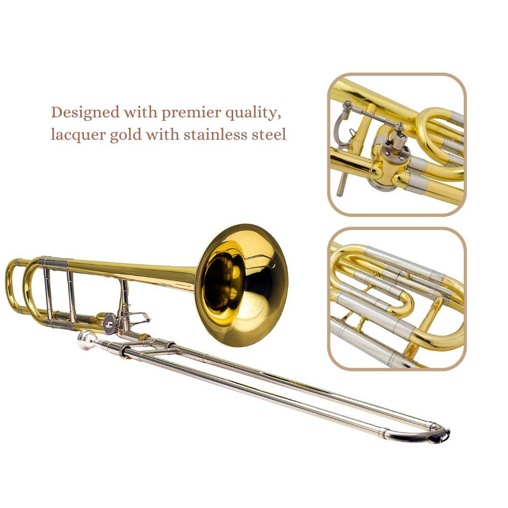 Harmonics Stick Trombone HSL-801L Bb/F Tenor Rod Trombone Trumpet Gold Lacquer with Soft Carrying Case