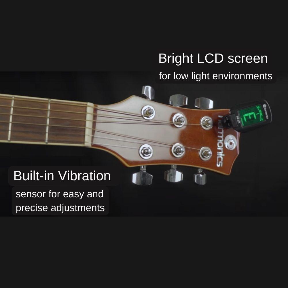 Introducing the Harmonics Clip Tuner – an affordable, great-performing tuner. Key Features: Comes with Guitar, Bass, Violin, and Ukulele patterns pre-configured The chromatic function lets you tune any musical note, including sharps and flats, making it possible to tune any stringed musical instrument Has a built-in vibration sensor for easy and accurate adjustments Its bright LCD screen is ideal even for low-light environments such as dark st