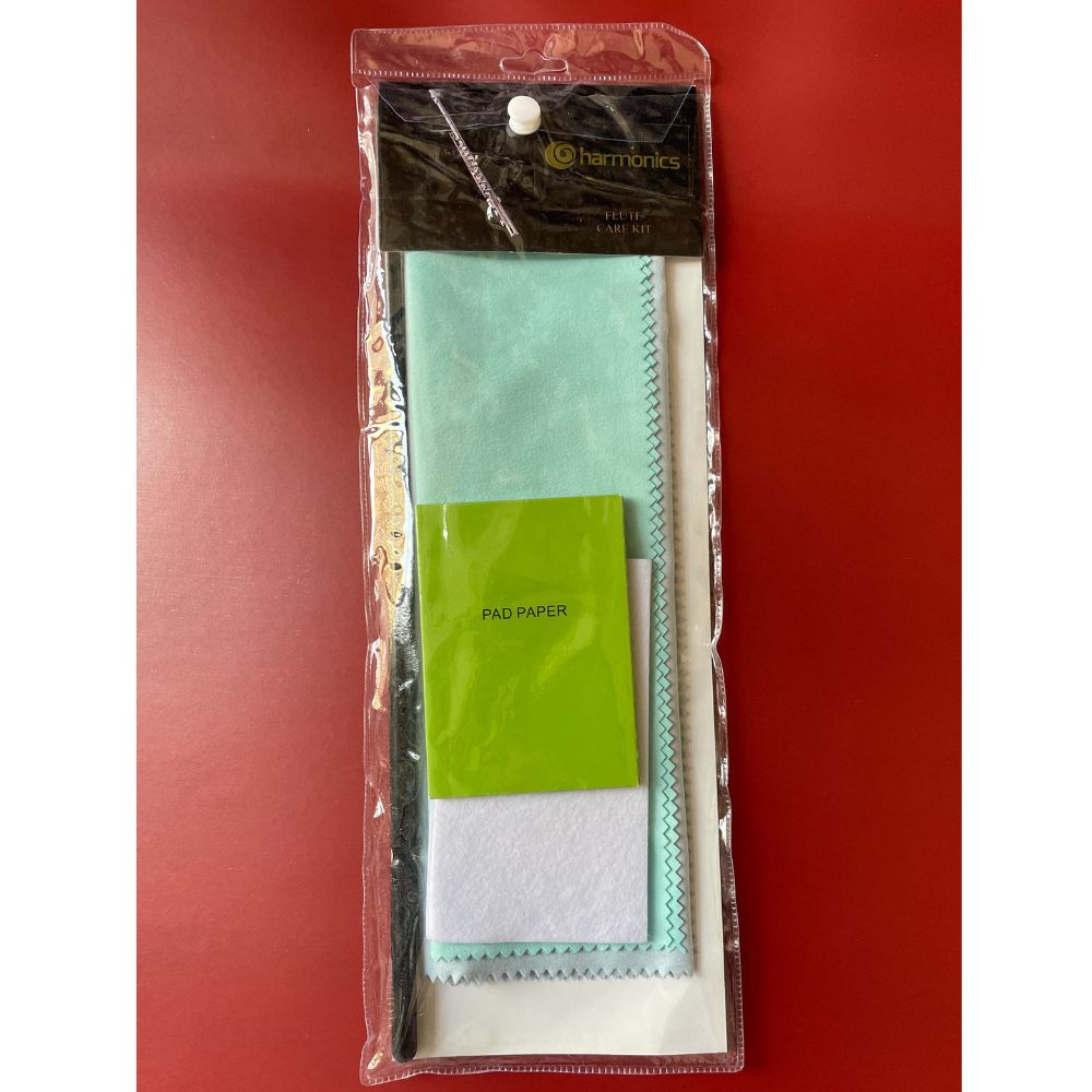 Harmonics Flute Care Kit, Maintenance Cleaning Set with Polishing Cloth, Cleaning Rod, Flute Swab, Rod Cloth, Pad Paper