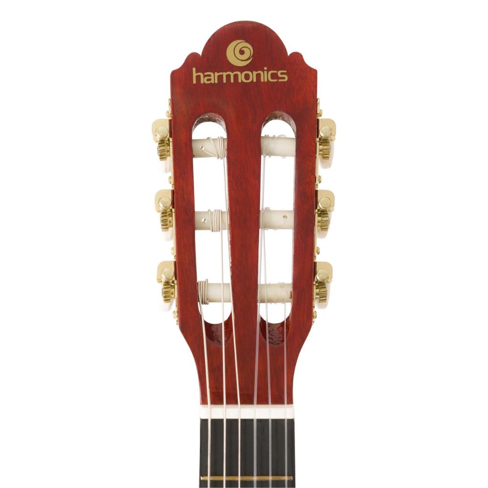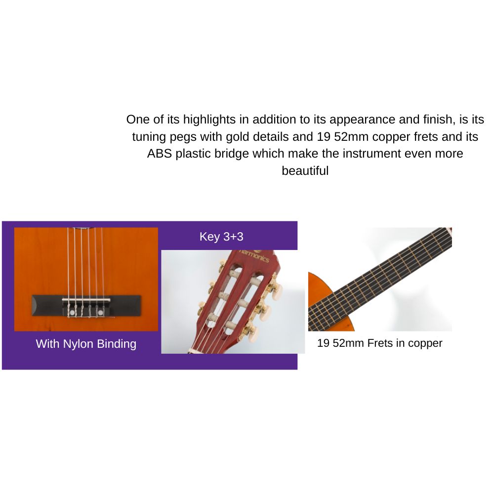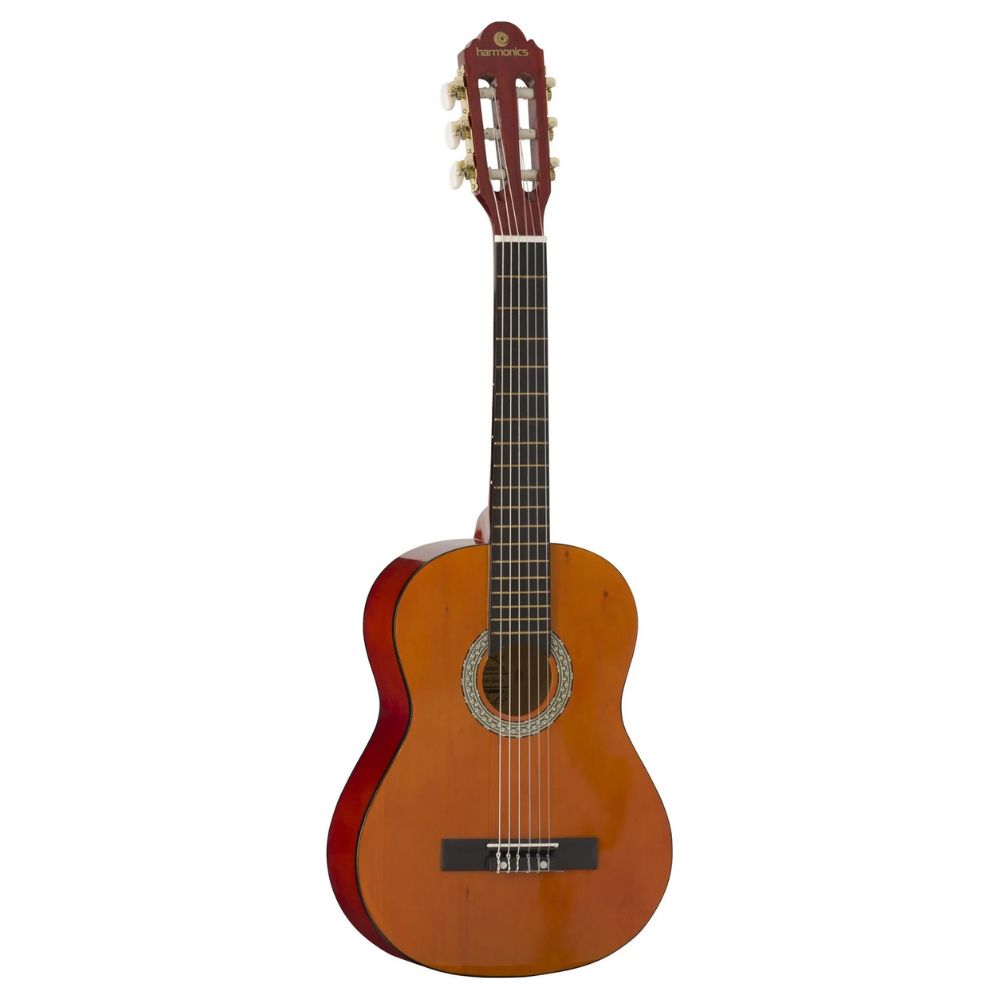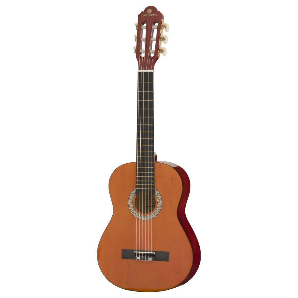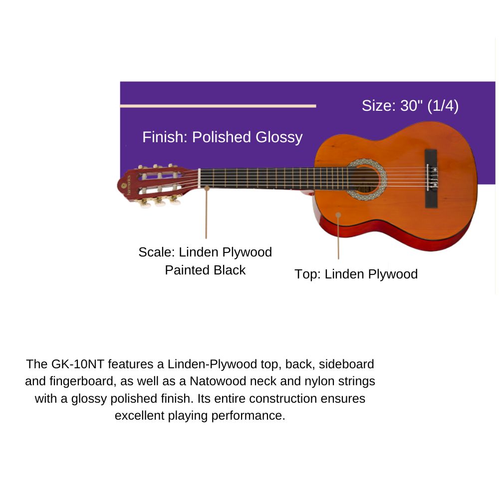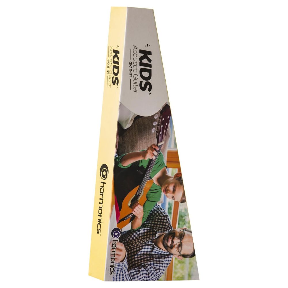 Encourage creativity and learning with this beginner-friendly kids’ acoustic guitar. Whether for a birthday, holiday, or music class, the Harmonics GK-10NT is the perfect choice to inspire the next generation of guitarists! Key Features: A light guitar with great playability and surprising sound The guitar body is finely crafted from top-quality Linden wood Ideal for beginning guitar lessons in childhood Has a full-bodied but well-balanced sou