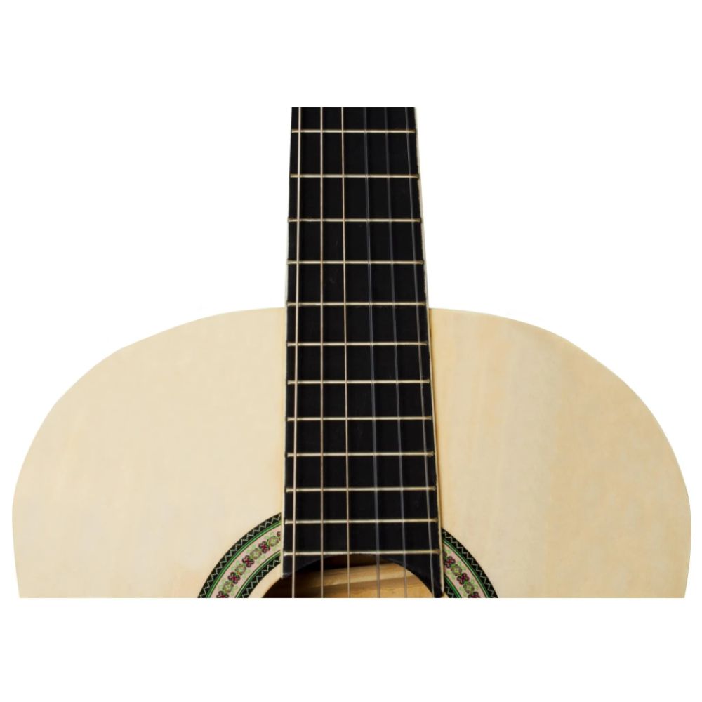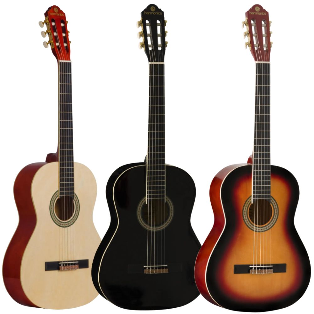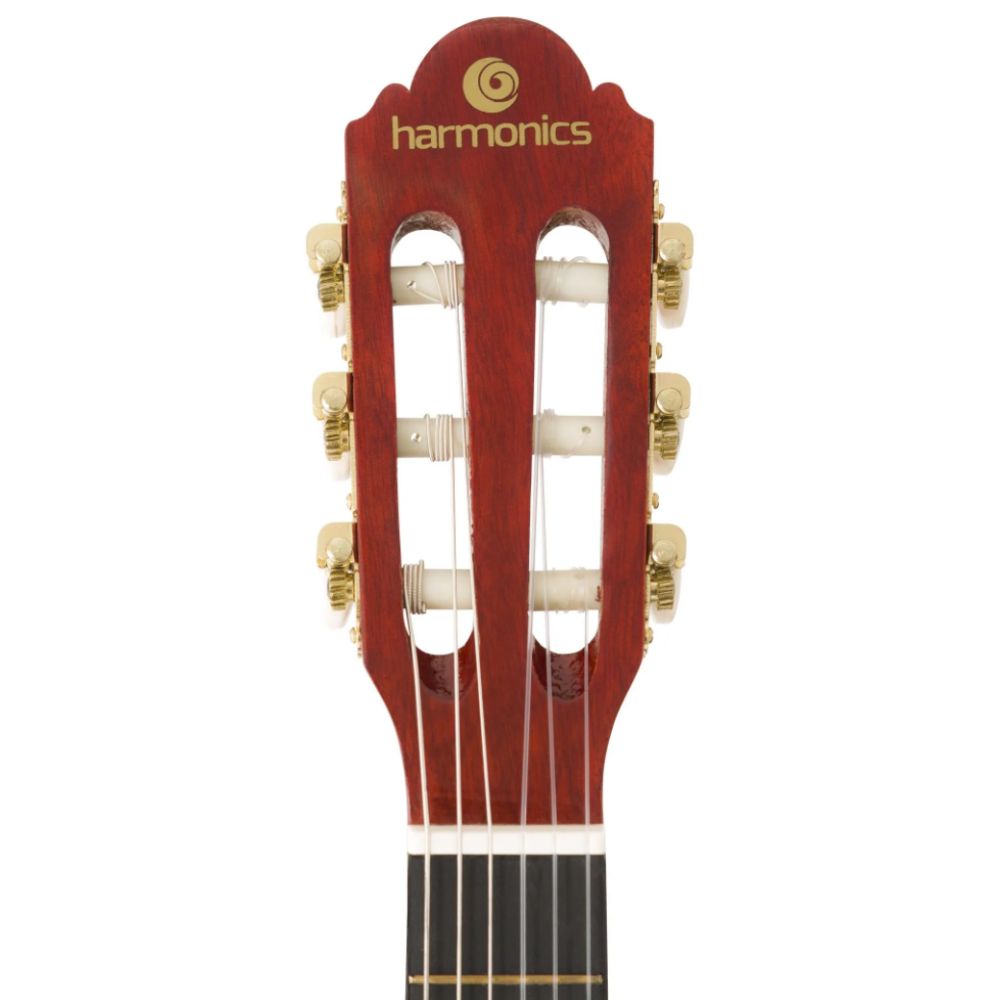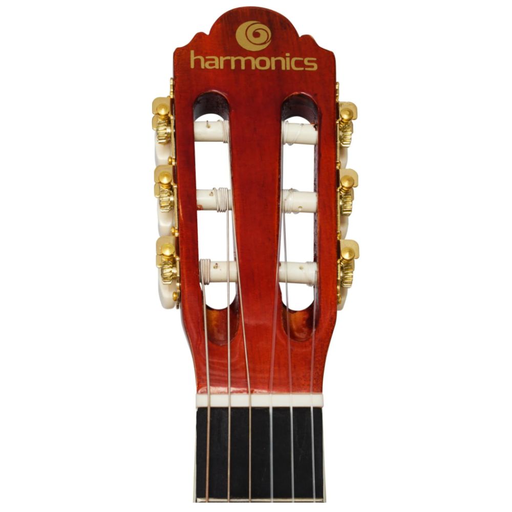 Harmonics Classical Acoustic Guitar is suitable for those who are starting their first contact with an instrument. Simple, but will take you to unique musical experiences. Key Features: A light guitar with great playability and surprising sound The guitar body is finely crafted from top-quality Linden wood Great instrument for music schools, beginners, and music lovers Built-to-last and sound great, with a full and perfect blend of warm and br