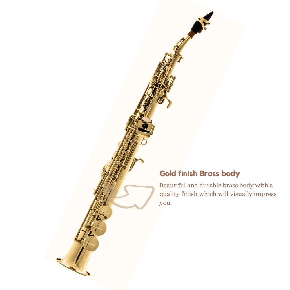 Are You looking for your new straight soprano saxophone to fulfill all your musical needs? Maro brings you the Harmonics Soprano Saxophone! Key Features: Made of good brass material, delicate and slick, comfortable to play High quality, high tone, high sensitivity and accurate sound Simple and elegant design, suitable for professionals and families Easy to use and maintain, suitable for musicians and saxophone lovers What you wi