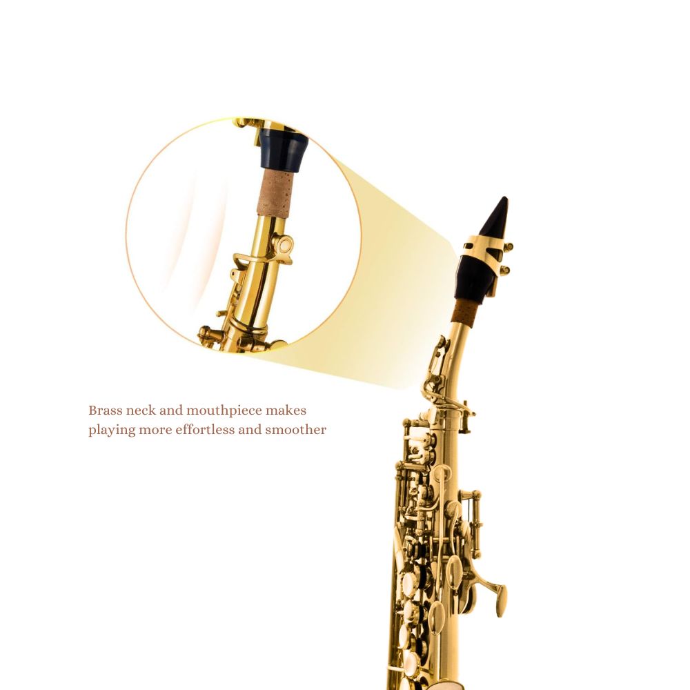 Harmonics HST-410L Bb Straight Soprano Saxophone Gold Lacquer with Luxury Case, Curved Tudel