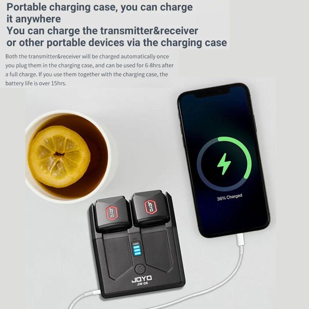 JOYO JW-06 5.8GHz Digital Wireless Guitar Transmitter and Receiver with Portable Charging Case for Guitar, Bass, and Electric