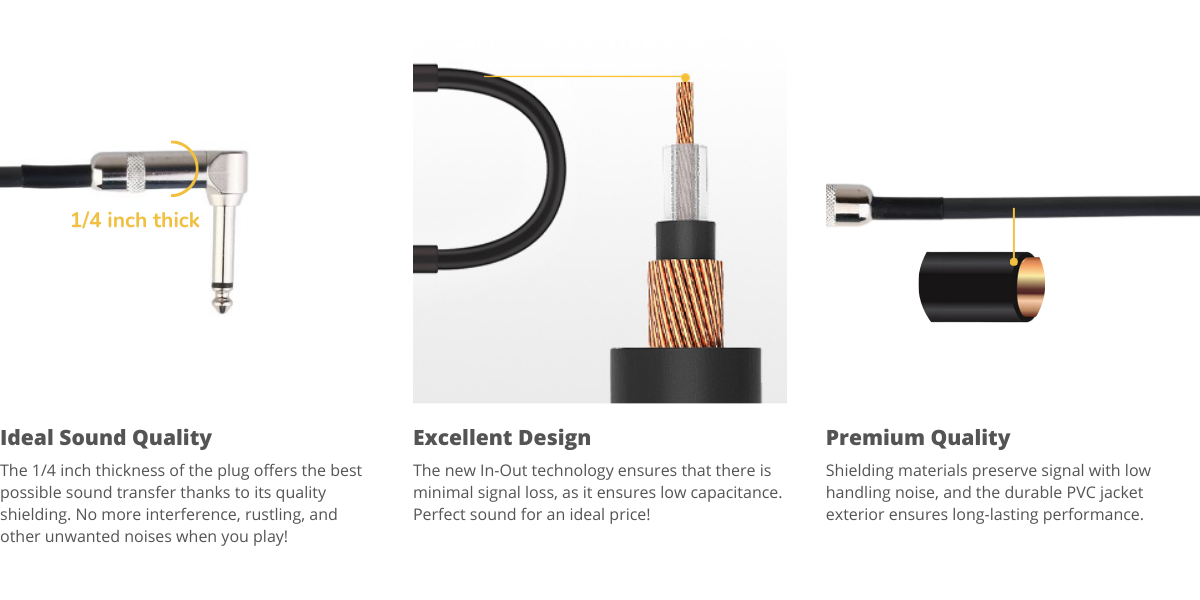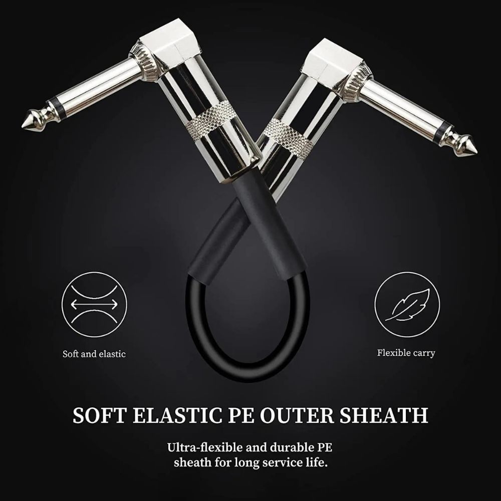 Maro 3 Pack Guitar Patch Cable with Right Angle Plug, 1/4 Inch Straight Instrument Connection Angle Patch Cable with Durable Gold Plated Connectors