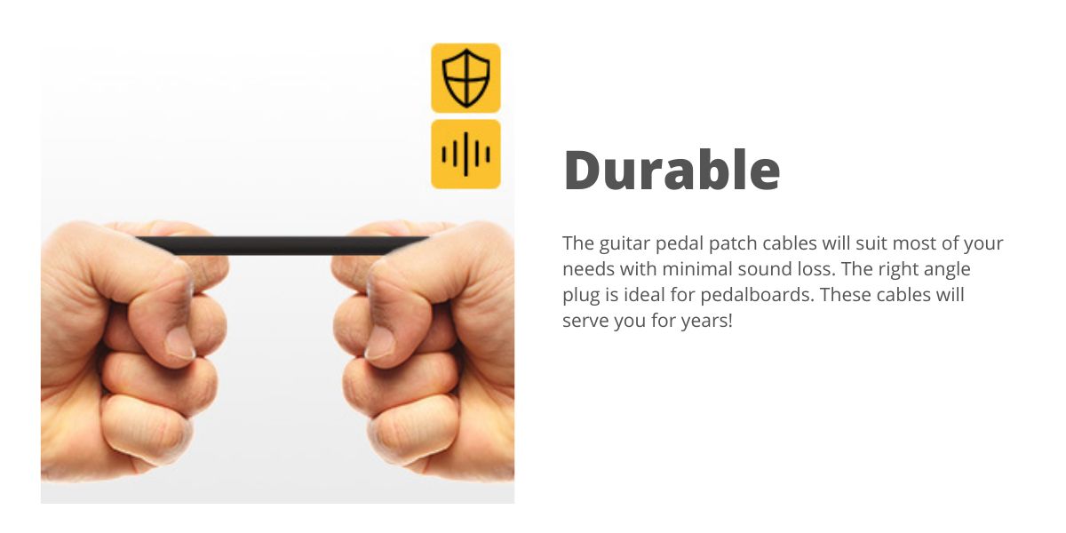Get this Maro Guitar Pedal Patch Cable with right angle plug, a versatile and essential accessory for any guitarist or musician who needs to connect their instrument to an amplifier or other audio equipment. Key Features: Flexible, durable outer jacket protects against kinks Pure copper conductors with copper braid shielding providing 97.5% coverage 90-degree 1/4 inch TRS male plugs at each end to keep your pedalboard tight and tidy Sh