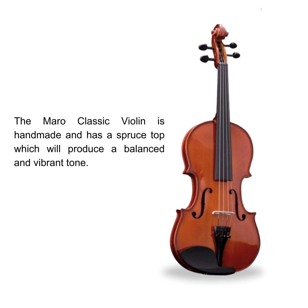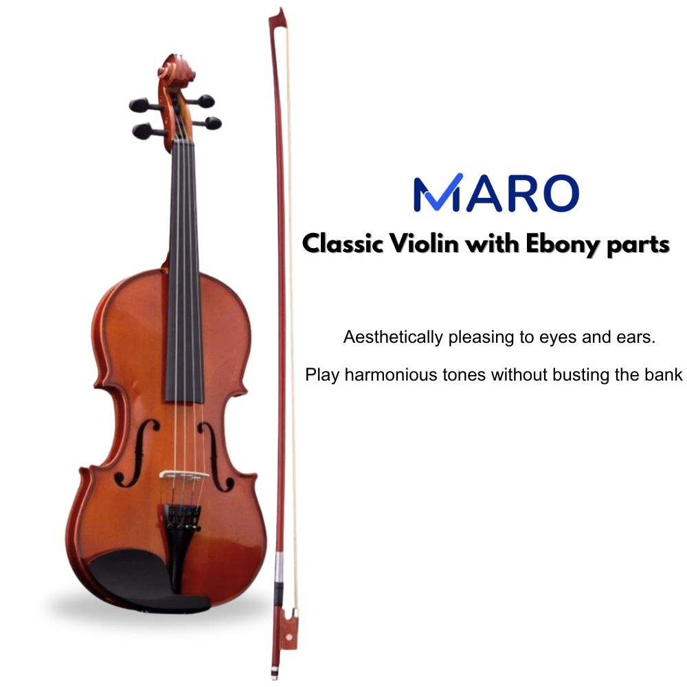 The world cannot live without music, which saves a life and sparks great joy. A solid wood violin can be a great choice for musicians who want a high-quality instrument with excellent sound and durability. Get Maro Music Exquisite Violin and bring positivity with it. Key Features: Solid wood violins are durable because the wood is denser and less likely to crack or warp over time A good touch feeling, can resist the pressure of strings and vibrate easily, thus havi