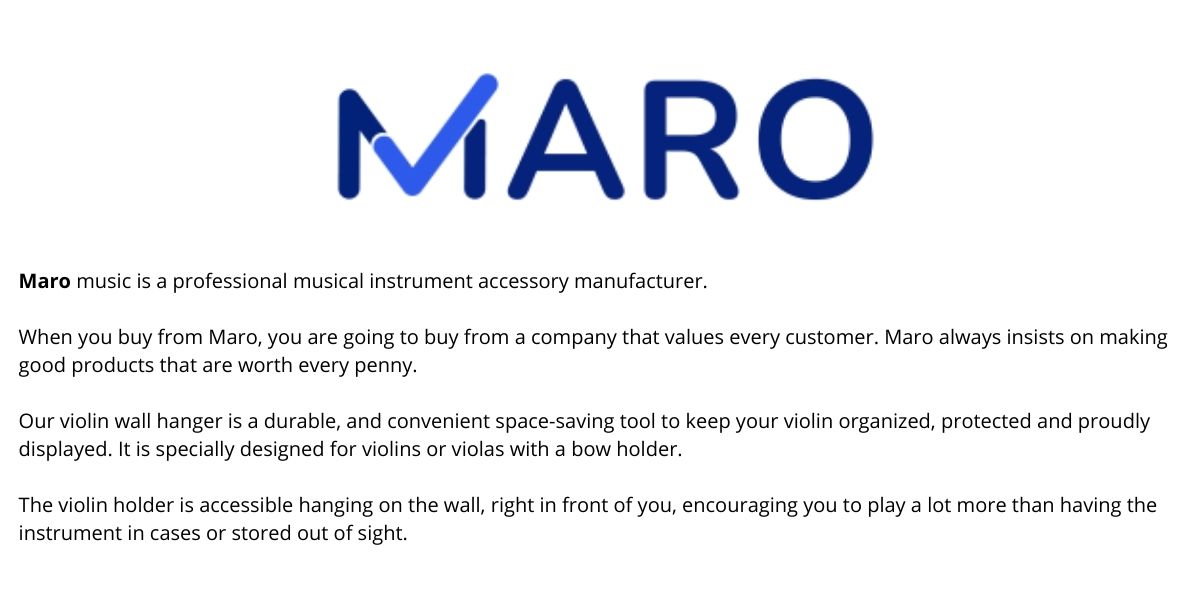 Maro Violin Wall Mount Hanger, Unique Design Guitar Hanger, Viola Hanger Hook with Rubber Cushion Wood Base